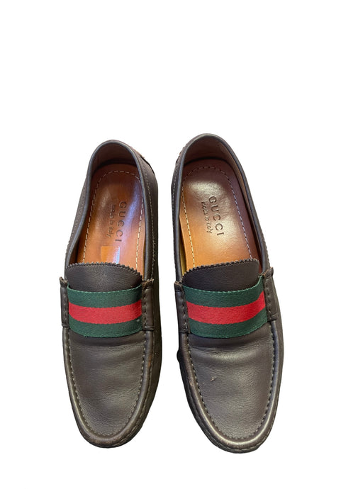 Gucci men’s green red ribbon brown leather shoes
