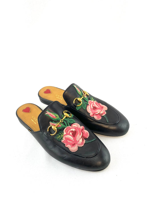 Gucci Princetown Horsebit Rose Appliqué Mule